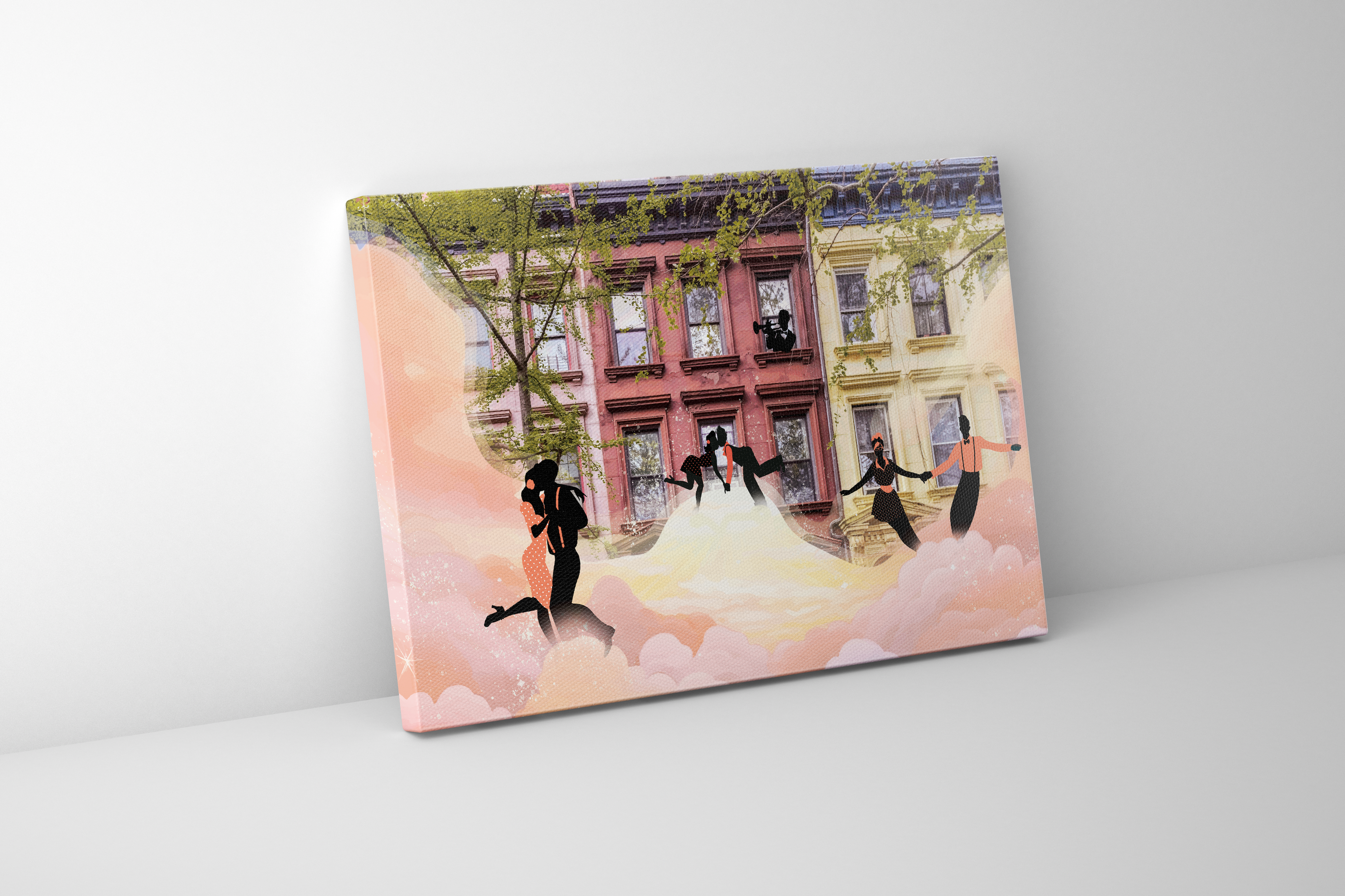 Two worlds collide. Cheek to Cheek blends the soulful swing of Harlem with a dreamy, whimsical vibe. Clean lines. Bold movement. A celebration of creativity in every brushstroke.