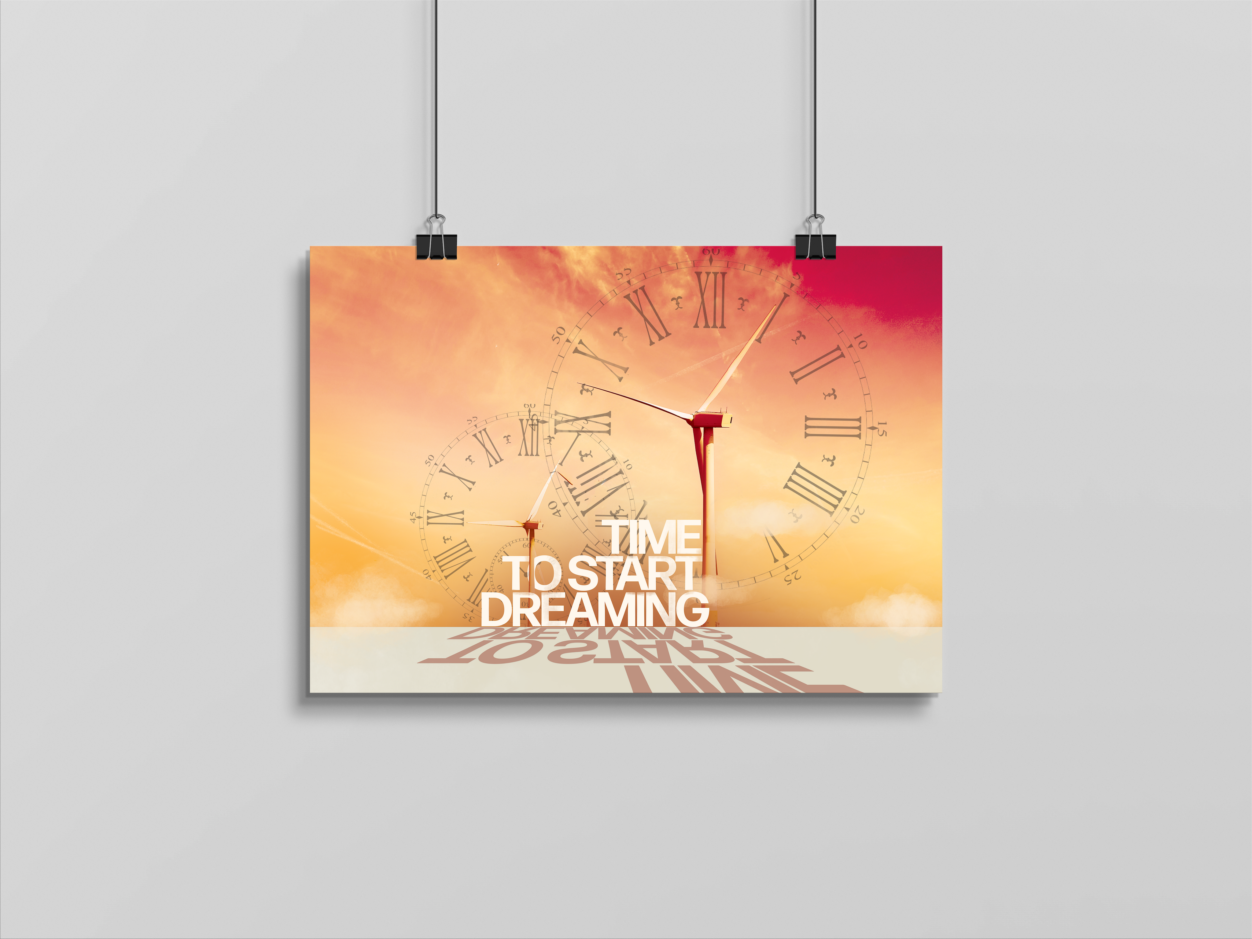 Time to Start Dreaming captures that golden moment before the breakthrough—the wind-up before the leap. Clock hands double as turbine blades. Momentum meets mindfulness. It’s a call to action disguised as a daydream.